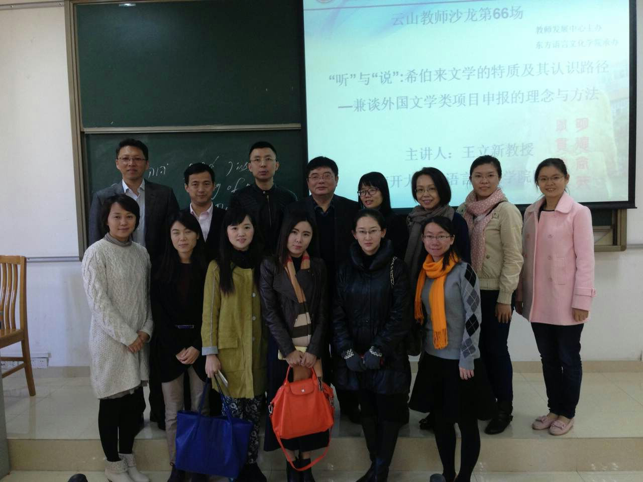 本网讯 11月27日上午,云山教师沙龙第66场,主题为“‘听’与‘说’:希伯来文学特质及其认识路径——兼读外国文学类项目申报的理念与方法”的讲座在七教314举行。本次讲座由日语系主任张志刚主持,南开大学汉语言文化学院(国际交流学院)院长王立新教授担任主讲嘉宾。讲座开始前,张志刚主任简单介绍了王教授并致辞热烈欢迎其到我校举行讲座。