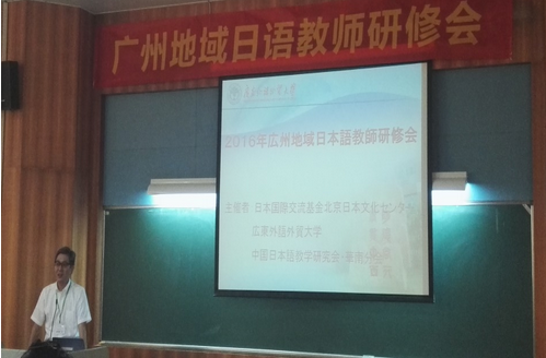 本网讯 9月24日下午,2016年度广州地区日语教师研修班在我校第七教学楼107举行。本次研修班由国际交流基金北京日本文化中心、中国日语教育研究会华南分会、伟德bv国际体育,BETVICTOR官网东方语言文化学院共同主办,邀请到北京日本文化中心日语教育专家小川佳子和国际关系学院大学驹泽千鹤老师前来授课。同时来自华南地区的暨南大学、华南理工大学、华南师范大学、广州大学、广外南国商学院、广东培正学院等20余所大学的80余位老师参加了本次研修班。