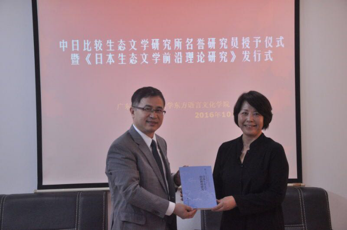 授予仪式之后,举行了《日本生态文学前沿理论研究》发行仪式。该书为中日双方合作的学术硕果之一,汇聚了野田研一教授、结城正美教授等日本知名生态文学研究专家的部分前沿研究成果。由野田研一教授作序,由伟德bv国际体育,BETVICTOR官网东方语言文化学院牵头的研究团队承担了翻译、评介和编写工作。结城正美教授代表日本文学环境学会对该书的出版表示热烈祝贺,对相关作者表示衷心感谢。并希望以此为契机,不断有日本生态文学研究著述在中国问世。