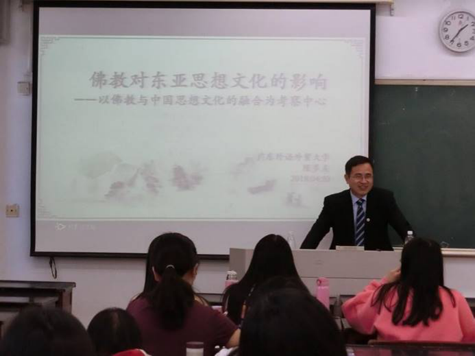 2018年4月20日,东方语言文化学院院长陈多友教授应苏州大学邀请,在苏州大学外国语学院进行了题为“佛教对东亚思想文化的影响”的专题讲座。外国语学院的师生参加了本次讲座。在演讲结束后的互动环节上,陈多友教授与在场师生进行了热烈的讨论,并对学生的提问进行了解答。