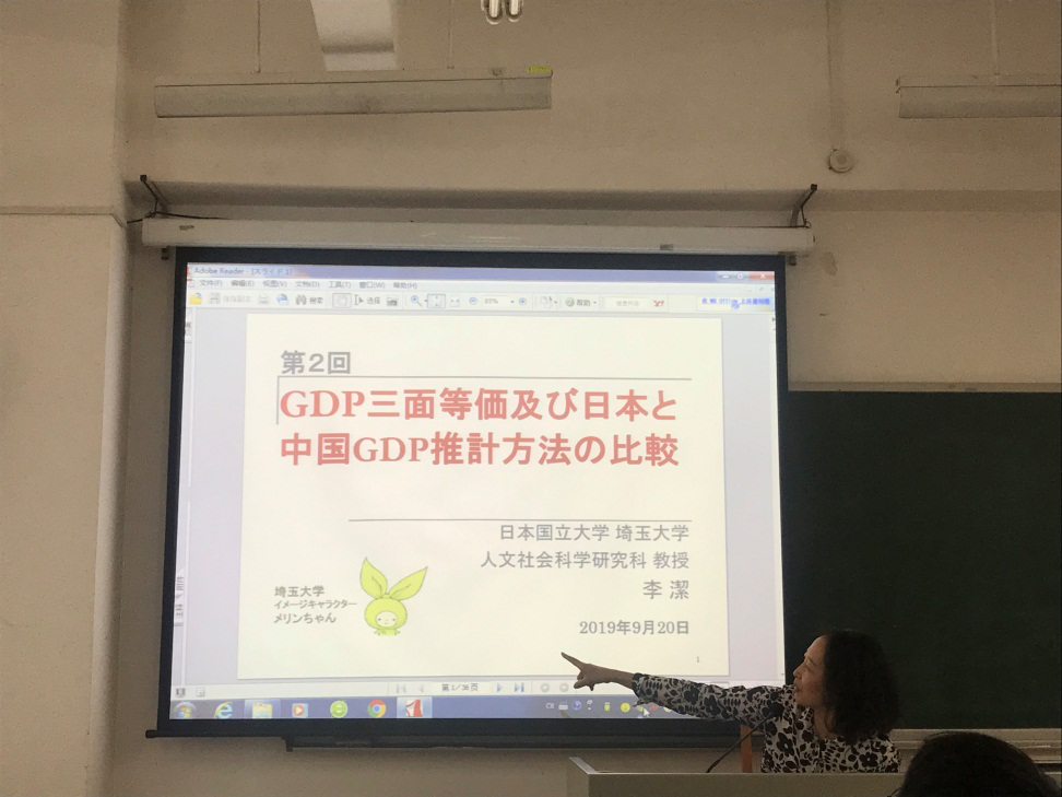 李洁教授的授课讲座分别介绍了日本的国民经济计算、中日GDP计算方法的比较及中日实际GDP和经济成长率的计算方法的比较等,由浅及深,循序渐进,凭借其丰富的研究经验,引领同学们走入中日经济这一领域。