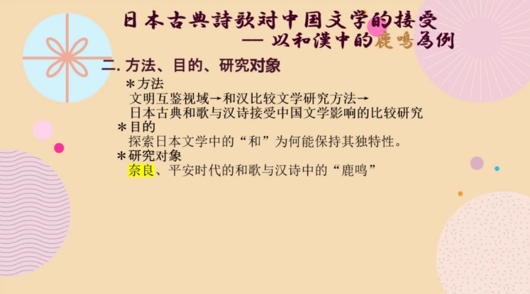 刘教授以其在日本古典文学领域的卓越成就,为在场师生深入剖析了日本文学在发展过程中如何保持其独特性,尤其是在深受中国文学影响的背景下。她特别指出,日本古典诗歌中的汉诗与和歌在受中国文学影响上呈现出明显的差异。通过对奈良、平安时代的和歌及汉诗中的“鹿鸣”的对比考察,就其在受中国文学影响上的差异进行论述,刘教授揭示了两种诗歌形式在接受中国文学影响时的不同姿态。