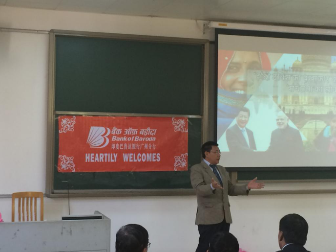 11月2日,印度驻穗总领事馆总领事Y. K. Sailas Thangal先生首访我校印地语专业,并出席了“2015世界印地语日演讲比赛”的颁奖活动和印地语专业首本内部刊物发布仪式。总领馆文化参赞P.V. Manoj Kumar先生和印度巴鲁达银行广州分行负责人Gangadhar Nayak陪同来访。东方语言文化学院院长陈多友教授、印地语专业特聘教授王金峰老师、南亚语言文学系主任胡瑞老师会见了来宾。一同参加颁奖活动及发布仪式的还有印地语专业全体师生。
