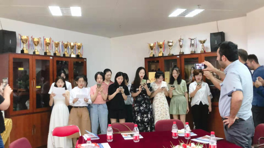 座谈会后,土耳其语系学生们倾情合唱土耳其流行歌曲《伊斯坦布尔的秋天》,对土耳其主流记者代表团的来访表示感谢,并一同合影留念。