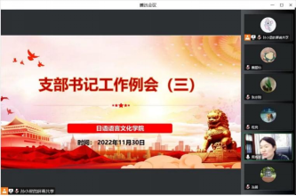 2022年11月30日,日语语言文化学院召开了2022-2023学年度第二学期党支部书记工作例会,学院党委副书记连勇和全体师生党支部书记参加。会议由学院党委书记周秀娇主持。