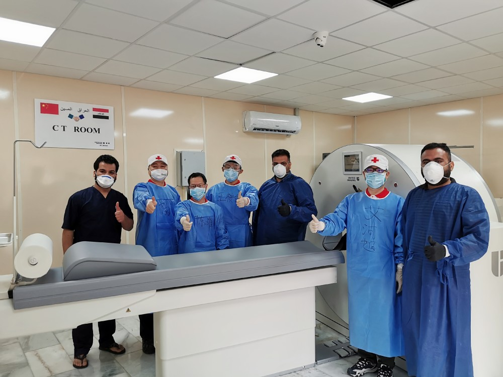 艾河旭(右二)在CT实验室