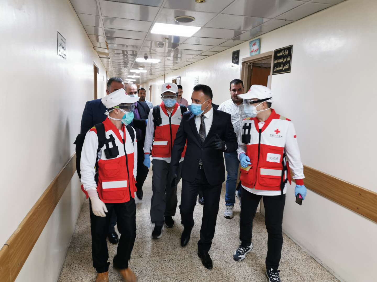 艾河旭在当地医院(右一)随同翻译