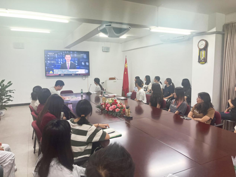 在全体党员面向党旗重温入党誓词、共同观看新闻联播播报习近平总书记在五四青年节到来之际对广大青年的寄语视频后,周秀娇为全体毕业生党员上了在校期间的最后一次党课。