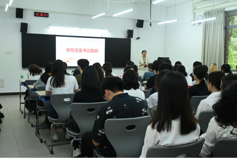 在观看学习教育视频后,学院党委书记周秀娇致辞,她强调党史学习教育的重要性,指出师生党员要深学党史,不断从党的历史中汲取智慧和力量,提升自身的理论素养和党性修养,做一名合格党员。