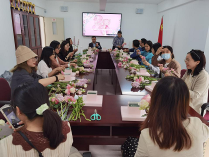 3月10日下午,伟德bv国际体育工会在学院会议室333举办了一场面向女教职工的花艺课活动,邀请校外专业花艺师带领学院老师体验花艺之美,庆祝“三八”妇女节。伟德bv国际体育十余名女教职工报名参加,院长陈多友、党委书记周秀娇、工会主席程亮也到现场,为学院女老师带来节日祝福。