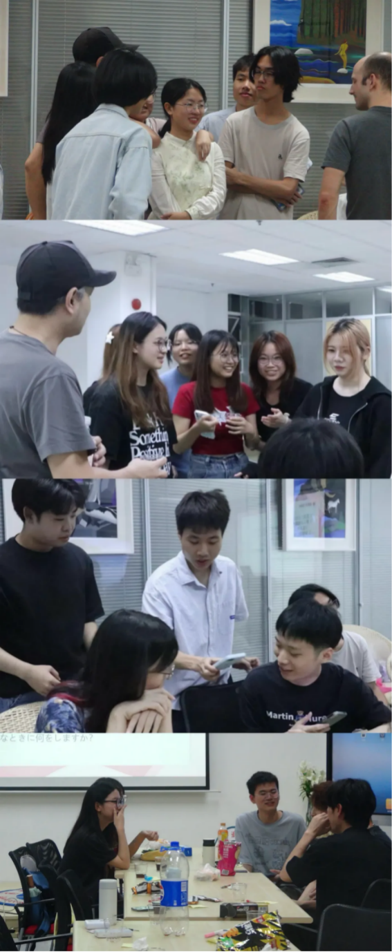 在自我介绍环节中,主持人将30名同学分为多个小组,彼此进行日语自我介绍且进行破冰交流游戏,使得大家对彼此印象逐渐加深。