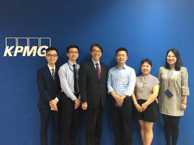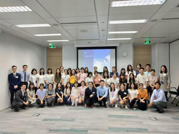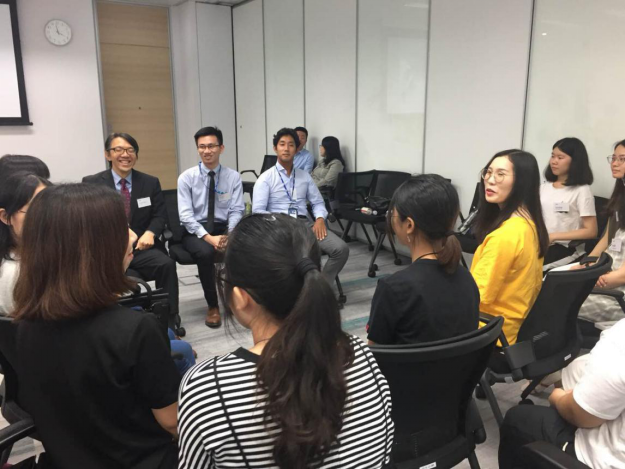到达KPMG公司之后,师生一行受到日本部合伙人稻永繁、日本部副总监玉成正胜、人力资源高级经理、02届校友林妍以及校友谢诗绮经理、梁健祺经理、陈冉晞经理等人的热烈欢迎。
