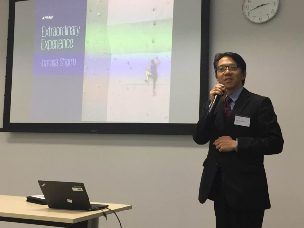 师生们首先观看了毕马威的公司视频宣传片,接着人资部门介绍了KPMG的公司概况和主营业务。稻永繁和玉成正胜分别向我们介绍了KPMG的企业文化和毕马威员工的成长历程,并表达了KPMG因业务需要对日语人才的需求。近年来,随着中日经济合作的深入发展,广州有几千家企业与日本有相关业务,与之伴随而来的是审计和税务业务大幅度增长,因此会计师事务所对于日语人才的需求量逐年增加。