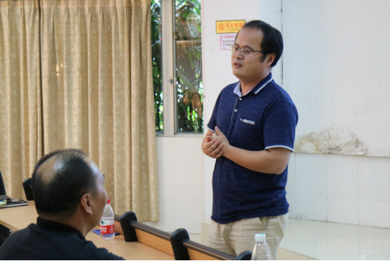 接着,辅导员朱浩文老师向家长介绍了“自我教育、自我管理、自我服务、自我监督”的学生工作理念。同时,他强调了家长与老师沟通的重要性。