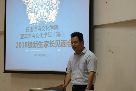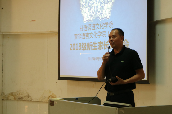本网讯 9月9日下午,日语亚非(筹)学院于第七教学楼110课室举办2018级新生家长会,面向新生家长介绍伟德bv国际体育建设发展、办学特色以及人才培养等方面的情况。伟德bv国际体育党委书记康为茂、党委副书记曾智鹏、副院长杨晓辉、副院长张秀强、副院长胡瑞、辅导员沈永英和朱浩文出席家长会,会议由曾智鹏副书记主持。