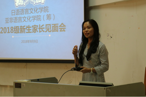 随后,副院长杨晓辉讲解了日语系学生的专业学习情况,并对亚洲校园中心项目进行了详细的讲解,向家长们展示了亚洲校园项目的管理目标及规划。同时,副院长胡瑞也就亚非学院(筹)的专业情况,向家长们展示了各专业的优势所在。老师们的讲解使家长们逐渐地了解到日语亚非(筹)学院雄厚的师资力量、广阔的教学平台及专业特色,从而对日语亚非(筹)学院有了充分的信心。