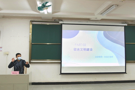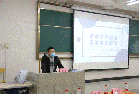 蔡昊老师对本次宿舍长培训会议的内容作了简要阐述。他表示,开展此次培训会的目的在于进一步明确宿舍管理规定和强化宿舍长职责。宿舍长作为宿舍生活秩序的核心,应当有序维护好宿舍生活的安全,并积极引领宿舍文化的建设。接下来,蔡老师还从宿舍长的角色定位与工作职责、建立良好宿舍关系的方法、学生宿舍管理须知和学生宿舍防疫要求四个方面作了细致讲解。