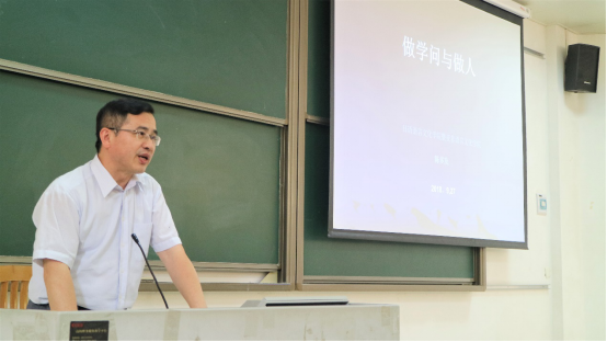 网讯 2018年9月27日下午,日语、亚非(筹)语言文化学院院长陈多友于七教314开展“做人和做学问”主题讲座,场内座无虚席,同学们认真聆听。