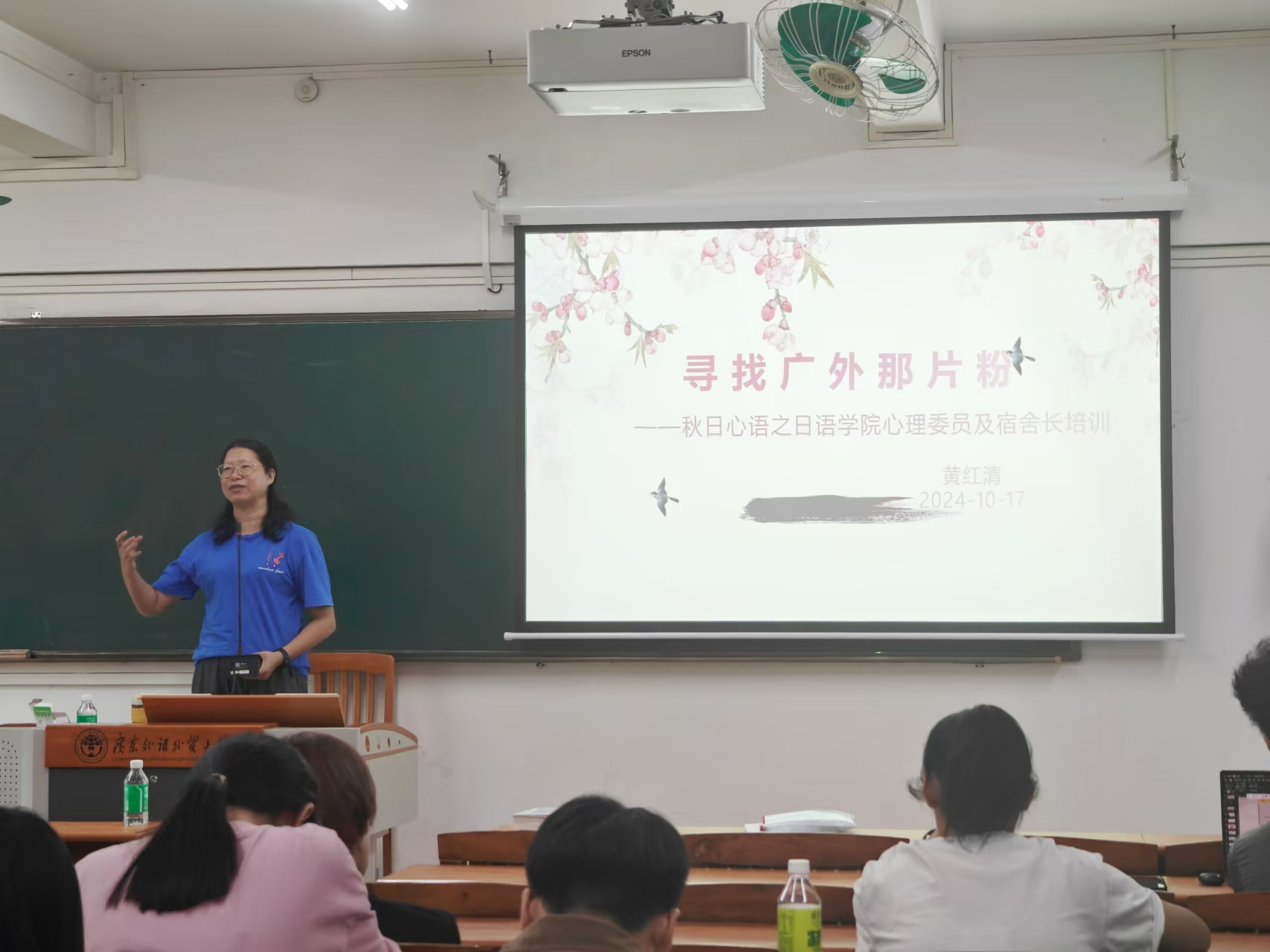 心理健康教育与咨询中心副主任黄红清老师以“寻找广外那片粉”为题,从莫奈花园和广外限定浪漫为切入点,为同学们讲述广外灿烂校景的同时,深入剖析了当代青年的心理状态,详细介绍了心理健康专业知识,细心教授大家如何进行应对。她寄语同学们多发现身边的美并记录下来,永远以崭新的心情迎接每一天的朝阳。